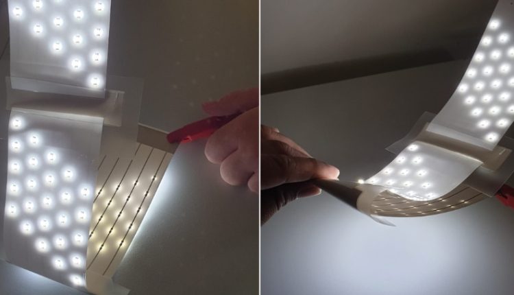 The cooperation of TracXon and Lohmann, based in the Netherlands and Germany, takes part in the competition with a tiled lighting and signage solution. A new customizable tiled lighting and signage device offers an easy-to-install, lightweight, and transportable solution for large areas. Designed for versatility, the device can wrap around curved surfaces like pillars, enabling smart surface applications for expositions, concerts, and other events. The demonstrator uses hybrid printed electronics to overcome the limitations of traditional PCB technology. This innovative solution uses a fully additive process, ensuring greater sustainability while enabling robust, flexible, and foldable interconnects to seamlessly connect components.