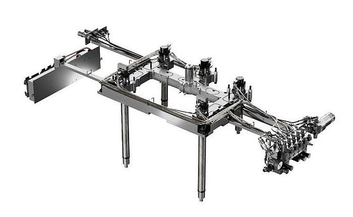 HyFlow uses a controller with a user-friendly interface to set the lock position of each individual pin. The opening and closing speed for each nozzle can be set by a manual adjustment mechanism. This allows for controlling the melt flow rate in a way that cascade injection molding results in a uniform mold filling process without sudden pressure drops and the associated surface defects. The positioning of the pin also allows for optimal balancing of the pressure distribution in the cavity during the entire injection process.