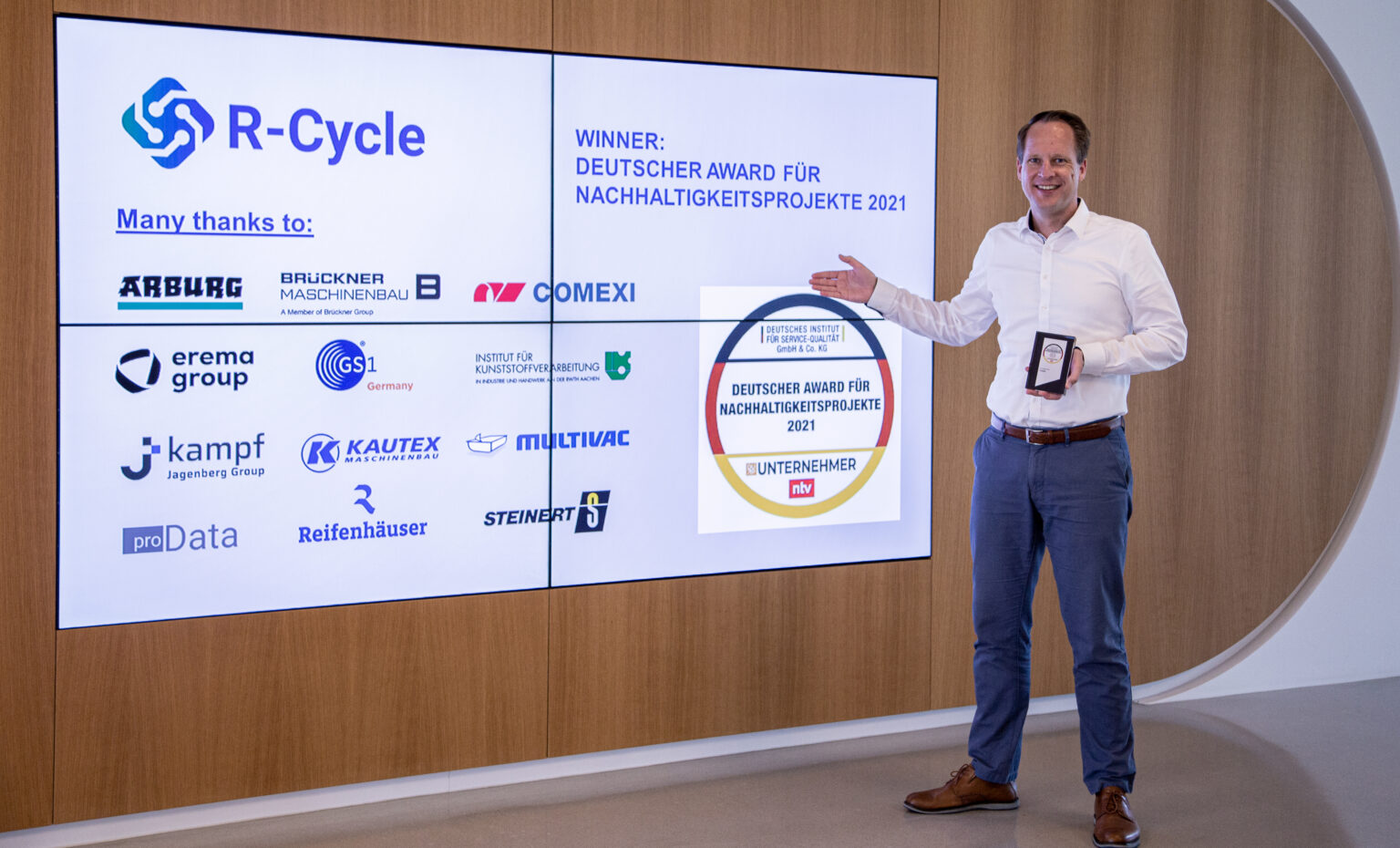 R-Cycle – the digital product passport for sustainable plastics – receives the German Sustainability Award 2021 in the “Packaging” category. The award is conferred by the German Institute for Service Quality (DISQ), the German news channel ntv, and Dup Unternehmer (German Entrepreneurship Platform for Digitalization and Sustainability). The award is patroned by Brigitte Zypries, former Federal Minister (ret.).