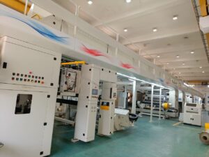 - Double Head Coating-1650:The Engineering Business of UFlex has been rising to the occasion to meet the ever-increasing demand of the market including in-house. In the recent past, there has been an increase in the demand for coating machines. The engineering business designed and developed the coating machines to cover web widths ranging up to 2500mm. One such machine of 1650mm width with double head has been supplied recently. The objective of the machines is to apply coatings spread over a range of thicknesses and carriers also. To meet the huge demand, various types of coating methods have been incorporated namely; gravure coating, reverse gravure coating with a gap, reverse gravure coating with kiss and kiss coating with a smoothing bar. Further ceramic IR heaters are very well used as preheaters before the film enters the dryer hood. In the double head coating both the heads have been made considering various demands as the first head comprises 5 drying cabinets and the second has 8 drying cabinets. Necessary safety precautions have been duly taken care of by way of using the LEL system. Additional features include floor lifting unwind and rewind, sleeve-type impression rollers, and chamber doctor blades to name a few. Riding high on the features and with the support of Corona Treaters, the machine is capable of coating right from a very thin coating of 0.2 GSM to a thick coating of 6 GSM guaranteeing smooth and even coating across the film width adding value to the substrates.